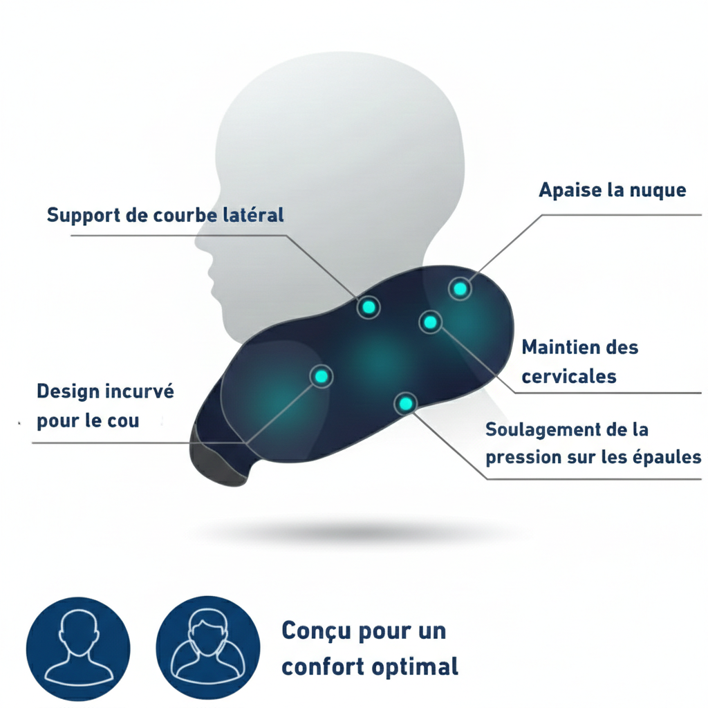 Offrez-vous un confort optimal durant vos déplacements avec ce coussin de voyage ergonomique, spécialement conçu pour soutenir votre nuque et améliorer la posture.