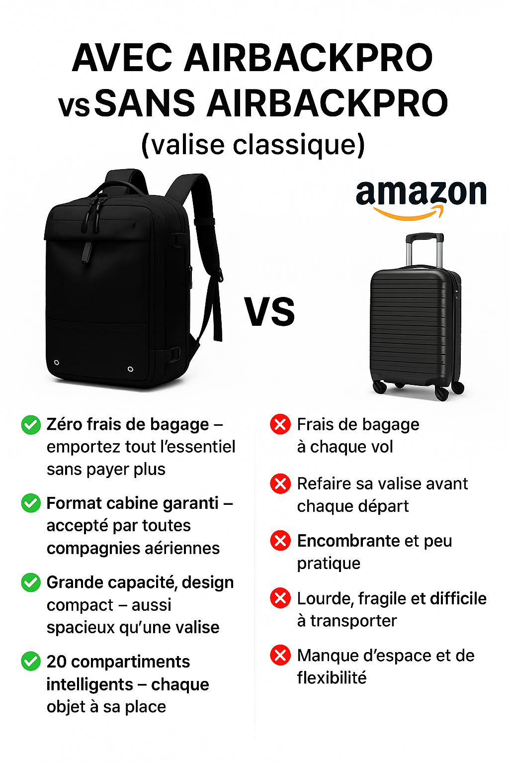 ✔️ Zéro frais bagage — économisez à chaque voyage